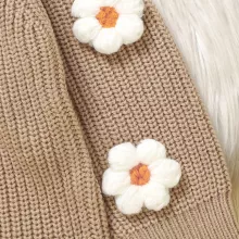 Give your little one the cutest style with this knitted baby romper featuring charming 3D flowers. Made from soft acrylic, this romper is designed to keep your baby cozy and comfortable through autumn, winter, and early spring. The 3D floral details add a delightful touch, creating a look that is both playful and adorable. With a simple pullover design, this romper is easy to slip on, making it a hassle-free option for both everyday wear and special outings.