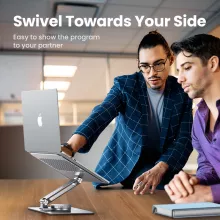 Say goodbye to cluttered desks and neck strain! This laptop stand lifts your device to a more comfortable height, making it perfect for long work sessions, video calls, or streaming movies hands-free. Its compact, space-saving design keeps your laptop secure in a vertical position, giving you more room for notepads, devices, and coffee cups. The aluminum material not only ensures lasting durability but also looks incredibly stylish on any surface, enhancing your workspace aesthetics.