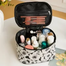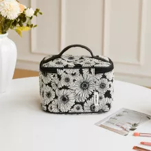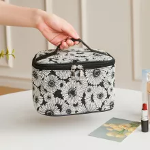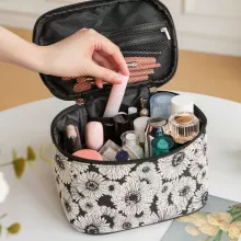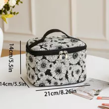 Get ready to upgrade your beauty storage with this Large Capacity Floral Cosmetic Bag—a stylish, practical choice for anyone who loves to stay organized while on the go. Perfectly designed to hold all your essential makeup, skincare, and beauty tools, this bag is both portable and functional, making it a must-have for travel, work, or everyday use. Crafted from durable polyester with a charming daisy floral pattern, it adds a touch of elegance to your routine while ensuring everything you need is right at your fingertips.