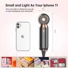 - Compact & Lightweight Design: At just 7.8 inches in height and weighing only 0.7lb, our Leafless Hair Dryer is your perfect travel companion. It easily fits into your suitcase or carry-on bag, making it ideal for on-the-go styling or compact storage.