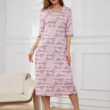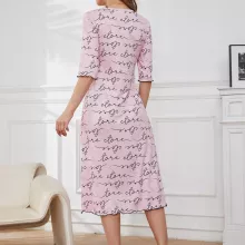 Elevate your loungewear collection with the Lettuce Trim V-Neck Nightgown for Women. Perfectly blending comfort and casual elegance, this nightgown features a chic letter print and a feminine lettuce trim that adds a touch of charm. Designed with a lightweight, breathable fabric, it’s an ideal choice for summer nights or anytime you want to relax in style. With its mid-calf length and flattering V-neckline, this pajama dress is as practical as it is beautiful.