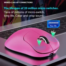 With a highly responsive optical sensor and DPI adjustments ranging from 1200 to 10000, this mouse delivers exceptional precision for every task. Its lightweight design and ergonomic shape ensure comfortable use during extended sessions, while its triple connection modes (wired, 2.4G, and Bluetooth 5.3) provide flexibility and reliability. The durable keys, rated for 20 million clicks, make it a reliable companion for years to come.