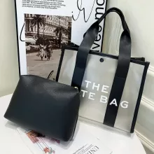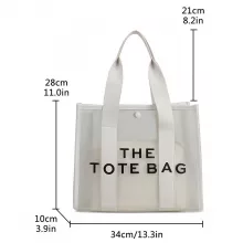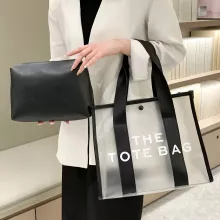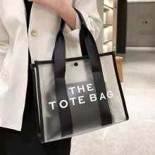 Step into the world of high fashion with our Luxurious Frosted Transparent Tote Bag for Women, meticulously designed to elevate your style quotient. This designer shoulder bag stands out with its frosted transparent finish, emboldened by stylish lettering details, creating a fashion statement like no other. The sleek black design exudes elegance, making it a versatile addition to your accessory collection.
