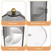 Our organizer, crafted from high-quality PS material, combines durability with a sleek, modern design. It’s not just any makeup holder; it’s a rotating marvel that keeps all your essentials at your fingertips. The transparent design with a protective lid ensures your cosmetics stay clean and visible, ready for use anytime.