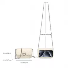 - Elegant Chain Shoulder Strap: Glossy chain strap adds sophistication and can be worn on the shoulder or crossbody.