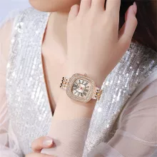 This luxury quartz watch for women offers the perfect balance of style and functionality. The square shape of the case, paired with the classic Roman numerals, adds a unique charm that sets it apart from other designs. The stainless steel band not only ensures durability but also gives the watch a sleek, polished look that complements both casual and formal attire. The precise quartz movement guarantees you’ll always be on time, making this watch both a fashionable and practical addition to your wardrobe.
