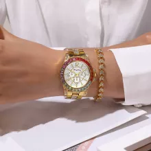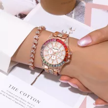 - Design: Round dial with colorful diamond detailing for a luxurious aesthetic.