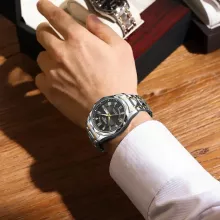 Redefine sophistication with this luxurious men’s quartz wristwatch. Perfect for both formal occasions and casual outings, this watch is designed to complement your wardrobe and reflect your impeccable taste. The sleek stainless steel band, combined with a luminous dial and a classic round shape, creates a versatile timepiece that’s as functional as it is stylish.