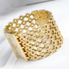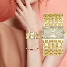 What sets this luxury women’s watch apart is its perfect balance between fashion and function. The shining dial, adorned with diamond accents, creates a glamorous statement piece that can be worn both day and night. The rectangular case is bold yet refined, offering a modern twist on a classic look. Ideal for both casual wear and special occasions, this watch’s versatility makes it a must-have addition to any woman’s jewelry collection. Whether you’re attending a formal event or simply enjoying a casual day out, this watch ensures you’ll do so in style.