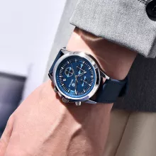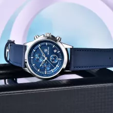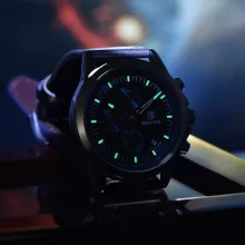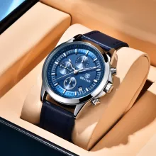 Elevate your wrist game with this luxurious men’s chronograph watch that blends sophisticated design with practical features. Crafted to impress, this timepiece is the perfect accessory for every modern man. Whether you’re heading to a business meeting, a casual outing, or out for a night on the town, this watch ensures you’ll stand out with its sleek, refined look. Featuring a stainless steel case and a stylish leather band, it offers both durability and style for every occasion. The luminous hands and waterproof design make it as functional as it is fashionable.