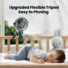 - Flexible Tripod Mount: Easily attach the fan to strollers, car seats, cribs, or even your desk with the flexible, durable tripod legs.