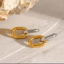 Turn heads and elevate your style with these Mixed Metal Chunky Two-Tone Dangle Link Hoop Earrings. Perfect for any occasion, these earrings combine modern design with timeless charm, making them an essential addition to your jewelry collection. Featuring a bold combination of 18K gold and stainless steel, these earrings exude sophistication and versatility. Whether you’re dressing up for a special event or adding flair to your everyday look, these earrings are the perfect choice.