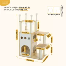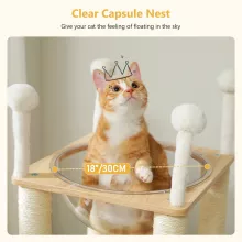 Boasting a multi-level design, it includes a 2-floor condo for cozy retreats, sturdy scratching posts made from premium sisal, and an elevated capsule nest that lets your cat survey their kingdom from above. Equipped with springy, dangling balls, this cat tree keeps your feline entertained for hours. It’s the ultimate combination of play, comfort, and durability.