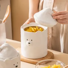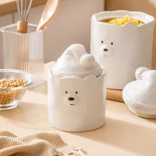 Adorable and Practical – White Ceramic Bear Storage Jar for Your Kitchen