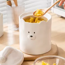 Ideal for eco-friendly and modern kitchens, this storage jar is both durable and stylish, offering a safe and convenient way to store your favorite dry foods. Its secure cover keeps contents fresh, while the ceramic material provides a safe, non-toxic environment for your ingredients. Whether you’re organizing your pantry or looking for a decorative jar to display on the counter, this bear-shaped storage jar brings a unique charm that’s hard to resist.