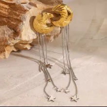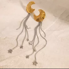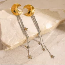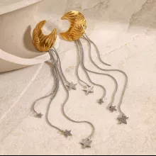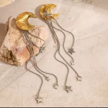 Crafted from stainless steel and coated with 18K PVD gold plating, these earrings are built to last. The anti-scratch and waterproof design ensures their brilliance stays intact for years to come. Hypoallergenic and free from harmful chemicals, they are safe and comfortable for all-day wear. Weighing just 12.7g, they offer lightweight elegance without compromising on style. The celestial charms are intricately designed to reflect the beauty of the night sky, making them a standout addition to your accessories.