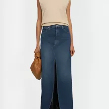 Turn heads and own every step you take in the Mother Denim Bombshell Maxi Skirt. Crafted from soft, high-quality cotton denim, this skirt blends classic charm with a bold twist. Its structured yet breathable fabric hugs your shape in all the right places, while the dramatic front slit adds a confident edge to your everyday look.