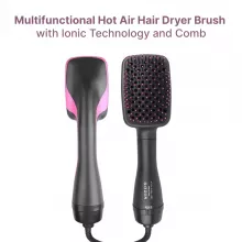 Achieve salon-quality hair at home with the Multifunctional Hot Air Hair Dryer Brush. Designed to simplify your styling routine, this 2-in-1 hair tool combines the power of a dryer and the versatility of a styling brush. With its sleek black and pink design, ionic technology, and hot and cold air settings, you can effortlessly create smooth, frizz-free hairstyles while saving time and effort.