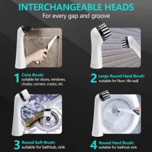 - Four Brush Heads: Includes medium and large scrubbing heads for general cleaning, a cone-shaped head for tight spaces, and a soft cleaning head for delicate surfaces.