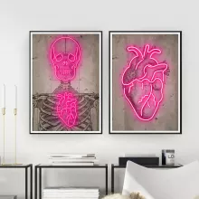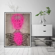 Whether you’re decorating your living room, bar, or office, the Neon Heart Skeleton Canvas makes a bold statement. Its unique combination of a glowing neon aesthetic and vintage design captures attention, creating a mood that’s both edgy and inviting. This piece is perfect for adding a touch of personality and flair to modern interiors or enhancing eclectic spaces.