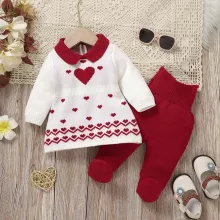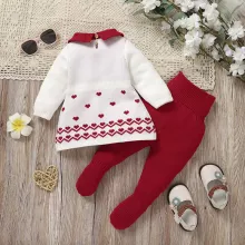 This Newborn Baby Girl Knitted Sweater and Pants Set is designed to keep your little one snug and stylish all autumn and winter long. Made from a premium blend of viscose, polyester, and nylon, this outfit is ultra-soft, warm, and perfect for a baby’s sensitive skin. The adorable heart pattern adds a sweet touch, while the turn-down collar and foot-wrapped pants make it both trendy and functional. This set is perfect for any occasion, whether it’s a family outing, a playdate, or a cozy day at home.