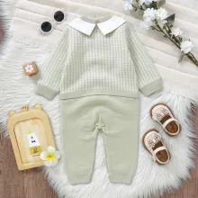 This knit romper is a perfect choice for parents looking for an outfit that combines comfort and style. The thoughtful design makes it ideal for daily wear, family outings, or special occasions, while the solid color and turn-down collar add a fashionable touch. Plus, the unisex style and simple pullover closure mean it’s an easy go-to piece that suits both boys and girls.