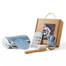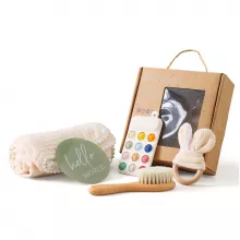 This all-in-one gift set provides new parents with quality essentials and photography props to capture those early milestones. The wooden brush is designed to be gentle on a newborn’s scalp, making it a lovely addition to baby’s first grooming routine. The crochet rattle rings introduce babies to soft textures, encouraging them to explore and learn through touch. Parents will adore the milestone cards, which allow them to photograph and share each precious moment, from first smiles to first steps. The soft blanket and towel are ideal for snuggling or as a beautiful backdrop for photo sessions.