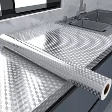 Transform your kitchen into a stylish, easy-to-clean space with our Oil-Proof Self-Adhesive Kitchen Wallpaper. Designed to withstand high temperatures and daily messes, this aluminum foil-backed wallpaper is perfect for your gas stove area, cabinets, and backsplash. Featuring a modern, geometric pattern, it not only enhances your decor but also protects your surfaces from spills, grease, and heat. With its self-adhesive design, this wallpaper is easy to install, remove, and replace, making kitchen upgrades simple and stress-free.