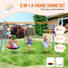 Transform your backyard into a fun-filled playground with this heavy-duty swing set, designed for maximum safety and enjoyment. With an impressive 600 lbs weight capacity, this sturdy A-frame swing set is built to accommodate up to three kids, allowing them to enjoy hours of safe, exciting outdoor play. The set includes a 32-inch saucer swing and two comfortable belt swings, crafted to withstand daily adventures and years of joyful use. From family gatherings to daily outdoor fun, this swing set provides endless entertainment while encouraging kids to stay active.