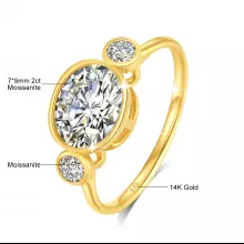 Oval Cut Moissanite Ring 2ct 14K Real Gold Wedding Jewelry for Women