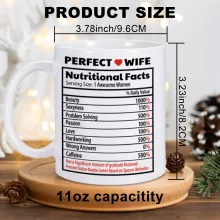 Add a spark of joy to her day with this delightful and practical gift. The Perfect Wife Nutrition Facts Coffee Mug is a blend of charm, humor, and quality that she’ll cherish for years to come. Don’t wait—give her a reason to smile with every sip!