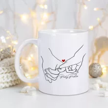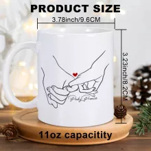 This stunning couple coffee mug is made from durable ceramic and designed for everyday use. It features a beautiful pinky promise design, which is hand-painted for a personal and unique touch. With a comfortable handgrip and a generous 11oz capacity, this mug is perfect for sipping on your morning coffee or enjoying a warm beverage together. The porcelain material ensures the mug’s longevity, making it a special keepsake for years to come.
