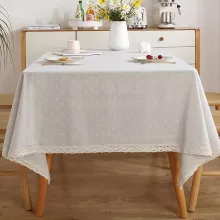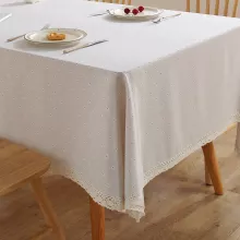 Add Elegance to Your Table with the Polyester Linen Lace Edge Tablecloth