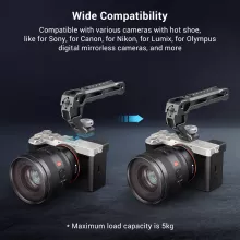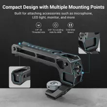 This top handle is best used in professional or DIY camera rigs for both handheld filming and stabilizer setups. Its lightweight design makes it a great choice for shooting in low angles, whether you’re shooting interviews, vlogs, or action sequences. The cold shoe mounts also make it perfect for mounting additional equipment like lights and microphones, ensuring that your accessories are easily accessible during shooting. Whether you’re shooting on location or in the studio, this top handle helps you get the most out of your camera cage setup.