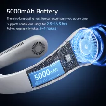 - Powerful 5000mAh Battery: Enjoy up to 17 hours of cooling power on a single charge. Fully recharges in just 2 hours.