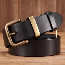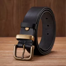 This cowhide leather belt is more than just a functional accessory – it’s a statement piece. Its solid and sleek design brings out your personal style, whether you’re dressing for a sophisticated dinner or a casual day out. The brass buckle adds a refined touch, making this belt a perfect choice for any gentleman who wants to look his best. The 3.8CM width gives you versatility, while the genuine leather ensures durability for years to come.