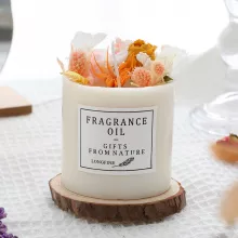Set the mood with this exquisite Preserved Flower Scented Candle. Crafted from high-quality soy wax and adorned with beautifully preserved dried flowers, this candle is a perfect blend of elegance, fragrance, and artistry. Ideal for weddings, romantic evenings, or simply enhancing your living space, this unique candle is as much an ornament as it is a functional piece of aromatherapy. Bring warmth and serenity into your home with a candle that is as enchanting as it is relaxing.