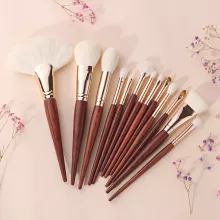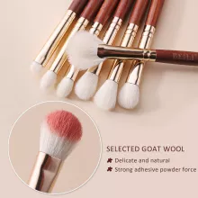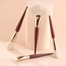 This wood-handled makeup brush set combines elegance with functionality. The natural wood handles add a sophisticated touch and make each brush comfortable to hold for precise application. The mix of goat hair, synthetic fibers, and wool fiber ensures a perfect blend of softness and firmness, making each brush ideal for different types of products and techniques. Whether you’re blending foundation, sculpting with contour, or highlighting for a radiant glow, this set provides everything you need to achieve a polished look with ease. It’s a complete toolkit, perfect for daily use or special occasions.