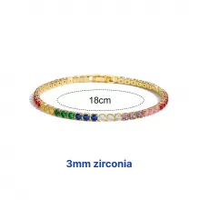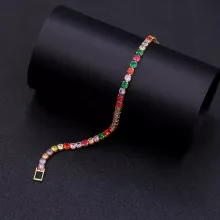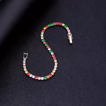 The brilliance of this bracelet lies not only in its vibrant colors but also in its ability to fit any occasion. From casual gatherings to formal events like weddings, the Rainbow Crystal Tennis Bracelet is designed to complement a wide variety of styles. The randomly colored zirconia stones make each bracelet unique, ensuring no two are exactly alike. Plus, the 18K gold plating offers long-lasting color protection, so you can enjoy its beauty for years to come.