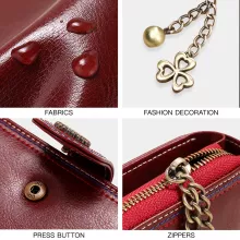 Crafted from high-quality split leather, this wallet boasts a smooth, durable finish that exudes sophistication. Its thoughtfully designed interior includes compartments for coins, cards, notes, and even a photo holder, making it a versatile companion for your busy lifestyle. The stylish metal pendant adds a unique decorative touch, elevating its overall aesthetic. Lightweight and compact, it easily fits into your pocket, handbag, or clutch, making it perfect for both everyday use and special occasions.