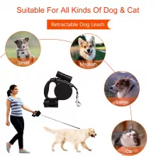 Enjoy stress-free walks with this retractable dog leash designed to offer your pet both freedom and security. Equipped with a heavy-duty, tangle-free nylon ribbon that extends up to 16.4 feet, this leash allows your dog to explore safely without compromising your control. The leash includes an integrated poop bag holder for ultimate convenience and a detachable, super-bright flashlight to keep both you and your dog visible during nighttime walks. This all-in-one leash solution is perfect for dog owners who want a durable, comfortable, and safe leash for every walk, day or night.