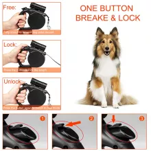 - One-Button Brake and Lock System: Easy control over your dog’s range with a simple push-button for quick release, pause, and locking.