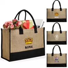 Reusable Eco-Friendly Large Jute Shopping Bag with King Print Design