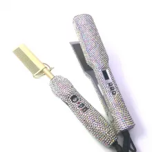Introducing the dual magic of our Hair Straightener & Hot Comb Set, adorned with shimmering white rhinestones, designed to revolutionize your hair styling routine. With a combination of advanced technology and elegance, this set promises not just style but also the ultimate hair care.