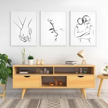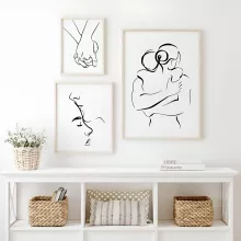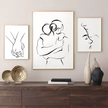 Bring a touch of romance and modern elegance to your home with these Romantic Love Couple Line Posters. Featuring beautifully abstract line art of couples in intimate poses—kissing, hugging, and holding hands—this canvas wall art is perfect for creating a warm, loving atmosphere in your living room, bedroom, or any personal space. These prints combine minimalistic charm with emotional depth, making them an excellent choice for modern and classic interiors alike.