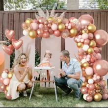 Whether you’re planning a sophisticated wedding or a whimsical birthday party, this kit is designed to suit a variety of themes and venues. The elegant combination of rose gold and pink hues creates a romantic and festive atmosphere, making it ideal for events celebrating love, life, and milestones. Plus, the confetti-filled balloons add a playful sparkle, taking your décor to the next level.