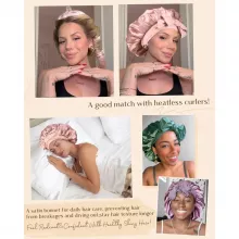 Our Satin Sleep Bonnet stands out from the rest due to its thoughtful design and premium materials. The adjustable tie band allows you to customize the fit for any head size, ensuring it stays securely in place while you sleep. Unlike other bonnets, the large size offers enough room for high hair volume, making it perfect for natural, curly, or long hair. You’ll wake up to smooth, tangle-free locks, thanks to the double-layer satin construction that protects your hair from friction and breakage. Plus, it’s machine washable, making it easy to keep clean and fresh.