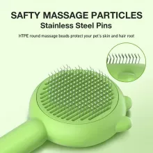 The 140° curved stainless steel needles are gentle yet effective, ensuring that your pet’s skin remains safe while thoroughly brushing through even the thickest of coats. The rounded resin tips on each bristle ensure no scratches or discomfort, making it perfect for daily use without hurting your furry friend. With a simple one-click cleaning button, hair removal is quick and easy, keeping your brush clean and ready for the next use.