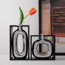 The unique combination of a sleek silver finish and hollow cutout frame makes this vase a standout decorative piece. Its lightweight yet sturdy ceramic construction ensures durability while maintaining a refined appearance. The versatile design allows it to complement various aesthetics, making it an essential addition to both modern and classic interiors. Whether paired with vibrant blooms or displayed on its own, it effortlessly enhances the ambiance of any room.