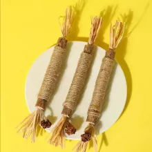 Delight your kitty with this Silvervine Chew Stick, a natural and irresistible toy that promotes dental health and satisfies your cat’s natural urge to chew. Made from real Silvervine, this chew stick is wrapped in raffia grass and hemp rope, giving it a texture cats love. Silvervine is a known stimulant for cats, making this toy both entertaining and beneficial. It not only helps clean your cat’s teeth but also provides mental stimulation and a sense of calm. Perfect for playtime, it’s an essential addition to your pet supplies.